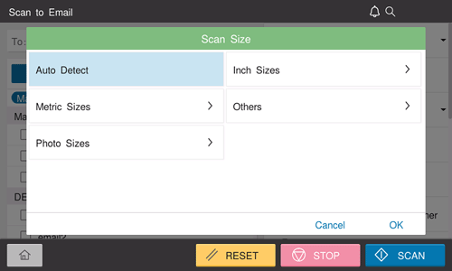 When the size of the original is not detected correctly, specify the size of the original you want to scan.