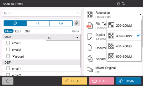 [300 300 dpi] | Select this option to scan a standard original at a higher resolution. |