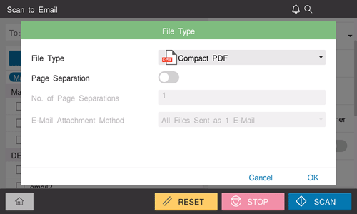 [E-mail Attachment Method] | When [Page Separation] is set to ON, select the attachment method.