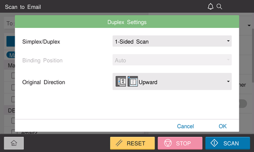 [Simplex/Duplex] | Select the side to scan the original (Simplex/Duplex). |