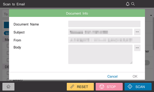 Change the file name of the scanned original. When sending by E-mail, you can specify the subject and text of the E-mail message and change the sender's E-mail address ("From" address).