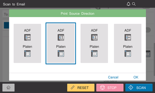 When scanning a 2-sided original, specify the original loading direction so that the vertical direction of the scanned original is set correctly.