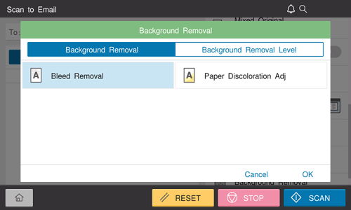 [Background Removal] | Scans a 2-sided original made of thin paper or an original with the colored background, with the optimum image quality.
