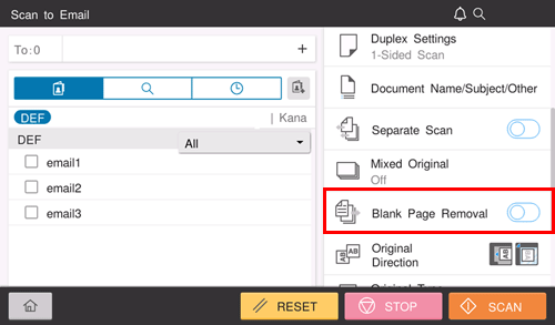 When [Blank Page Removal] is specified to scan an original including blank pages using the ADF, blank pages are excluded from scan targets. Blank pages detected are not counted as original pages.