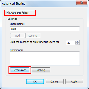 Click the [Sharing] tab, and also click [Advanced Sharing].