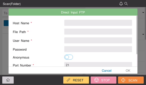 [User Name] | If authentication is required in the FTP server, enter the available user name to log in (using up to 64 characters). |