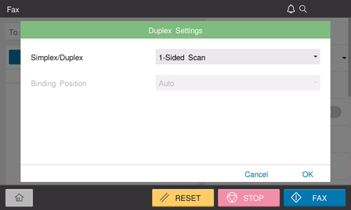 [Simplex/Duplex] | Select the side to scan the original (Simplex/Duplex). |