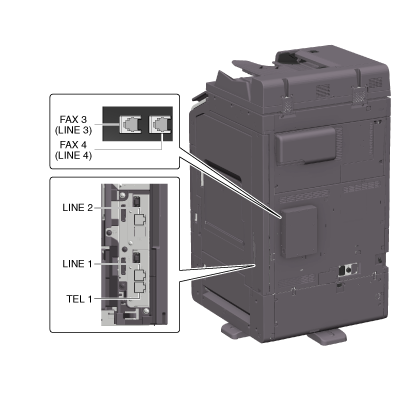Use the TEL port for connecting a telephone cord. Even if multiple lines are used, connect a telephone cord to TEL port 1. A telephone cord cannot be connected to the TEL port on the additional line side.
