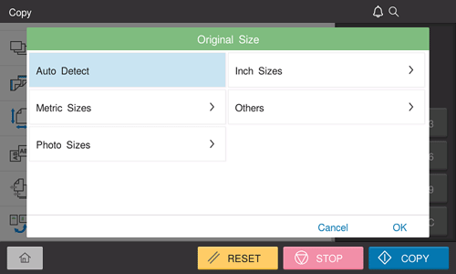 When the size of the original is not detected correctly, specify the size of the original you want to scan.