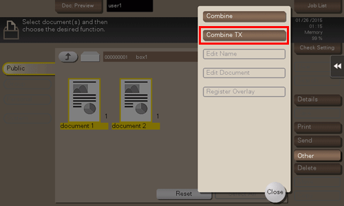 When collectively sending multiple files, you can combine those files and handle them as a single job. This is referred to as "Combine TX".