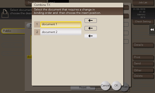 Change the file sequence (Combine TX sequence) as needed, and tap [OK].