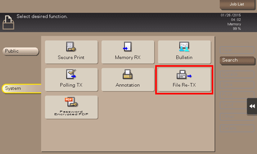 Tap [System] - [File Re-TX].