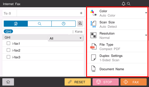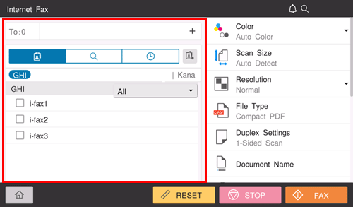 Using the Stop key enables you to stop scanning the original. A list of the currently stopped jobs is displayed. To stop transmission, select the target job from the list, and delete it.