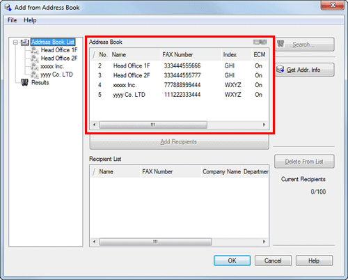 Select the recipient from the [Address Book] list, then click [Add Recipients].