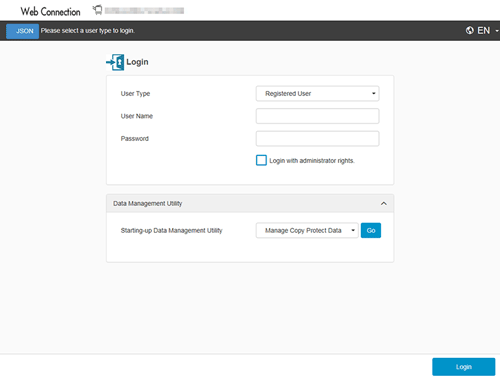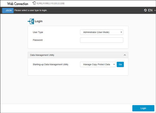 Two login modes of Web Connection are provided: the "administrator mode" and the "user mode".