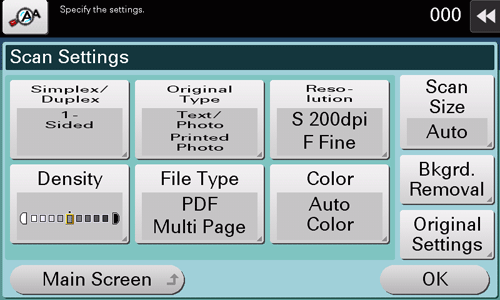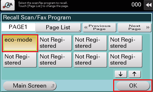 The scan/fax program contains a combination of commonly-used settings as one recall key. For transmission, recall the scan/fax program with a single touch of a button on the main screen of Enlarge Display.