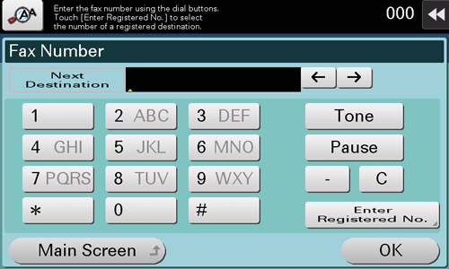 Tapping [Enter Registered No.] enables you to specify a destination with a registered number.
