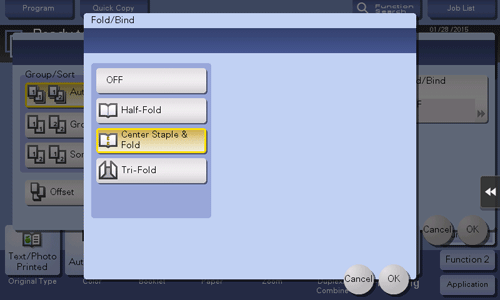 If Center Staple is enabled, [Booklet] is set to [ON] automatically.