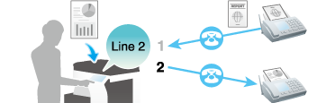 Sending/receiving a fax using an additional line