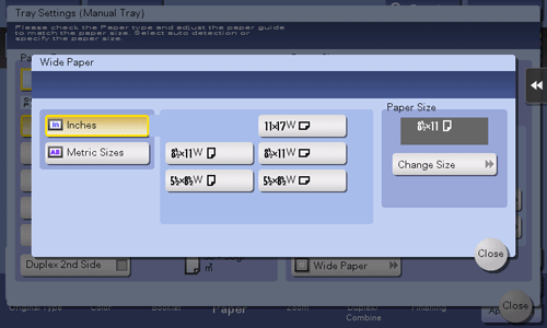[Inches] | When loading wide paper in inch size into paper tray, select the paper size. |