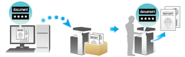 Secure Print is a function that assigns document ID and password to print data and saves the data to the Secure Print User Box of this machine. This function does not print data immediately, thereby preventing printed materials from being missing or left. You need to enter the document ID and password on the screen of this machine to print the data saved in a User Box. Therefore, this function is particularly suitable for safely printing highly confidential documents.