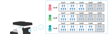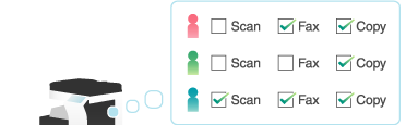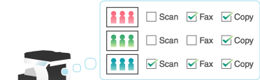 Installing account track allows you to restrict available functions by account track. For example, you can carry out operations so that all functions are available for specific account tracks while fax transmission is unavailable for other account tracks. Configuring settings based on the business contents of account tracks prevents an unsafe divulging of information.