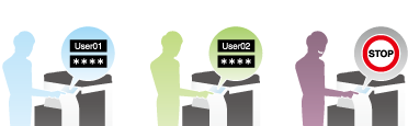 Installing user authentication allows you to restrict available functions for each user. For example, you can carry out operations so that all functions are available for specific users while fax transmission is unavailable for other users. Configuring settings based on the business contents of users prevents an unsafe divulging of information.