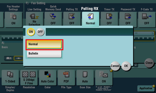 3. Tap [Application] - [Fax Setting] - [Polling RX], then tap [ON].