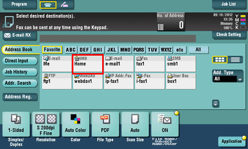 If you log in to this machine while user authentication is installed on this machine and Active Directory is used as an authentication server, the [Home] key appears in the [Address Book] screen.