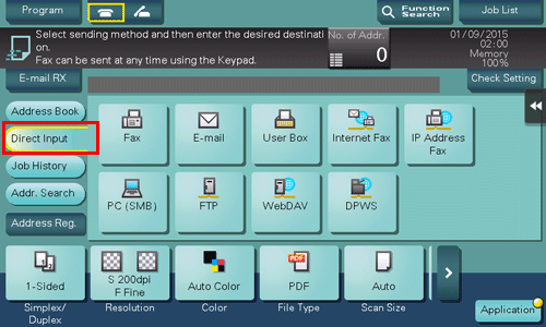 Tap [Direct Input], select the destination type, and then enter a destination.