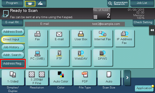When a fax transmission to the destination which is specified by direct input is complete, tap [Address Book] and check that the destination is registered.