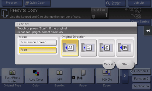 6. Tap [Print], and select [Original Direction] according to the original direction.