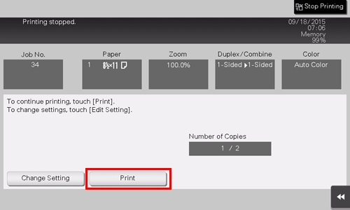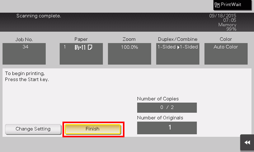 8. After all originals are scanned, tap [Print] or press the Start key.