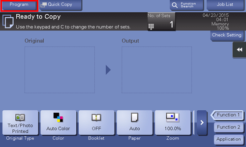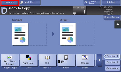 When you register a copy program, you can recall the combination of various copy settings from the main screen with simple action.