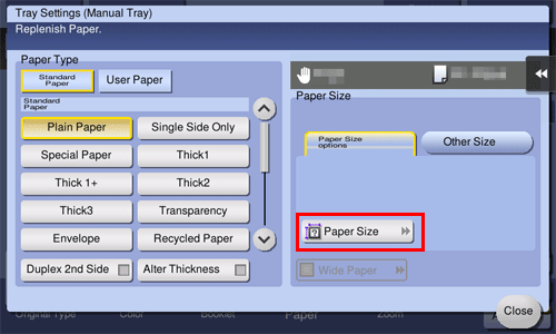 Tap [Paper], then select Tray1, Tray2, or Bypass Tray.