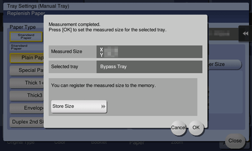 Measure the size of custom paper using the Original Glass. If you register the measured size in the memory, you can reduce the number of steps required to enter the size from the next time.