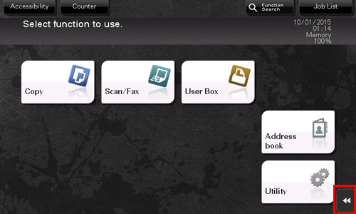 The slide menu provides function keys used to switch to the copy or scan screen. Function keys to be displayed on the slide menu can be changed to suit your environment.