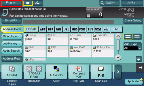 You can also register Fax/Scan programs using Web Connection. For details, refer to Here.