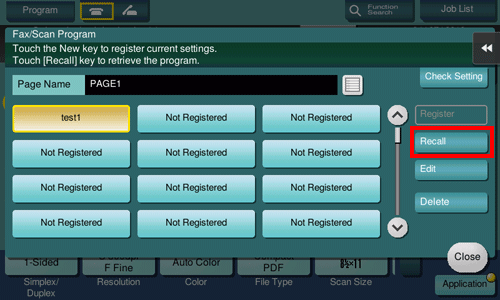 Program is a function to register a combination of frequently used option settings as a recall key. The program to be registered in Fax/Scan mode is called Fax/Scan program.