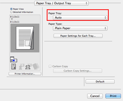 In [Paper Tray:] in [Paper Tray / Output Tray], select the paper tray for printing.