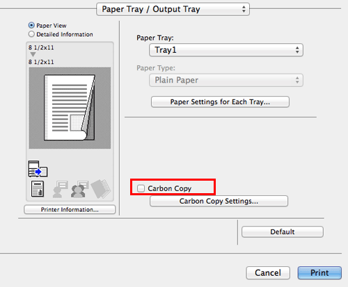 [Carbon Copy Tray] | Select the paper tray for carbon copies. Select the check boxes for all paper trays to be used. |