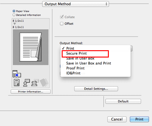 In [Output Method:] in the [Output Method] window, select [Secure Print].