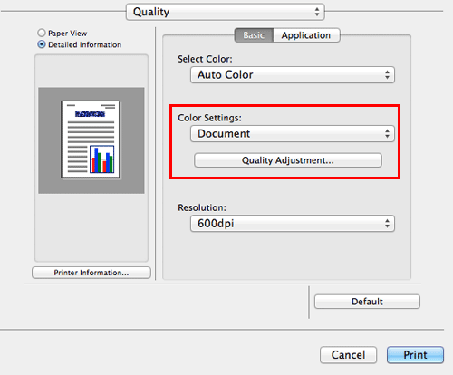 In [Select Color:] in [Quality], select a color mode for printing.