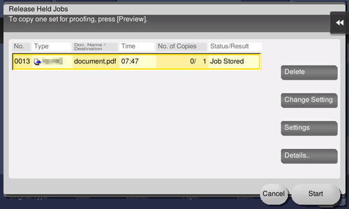 Because you can check the print result before starting printing the remaining copies from the Touch Panel, this function is helpful to prevent a lot of misprints.