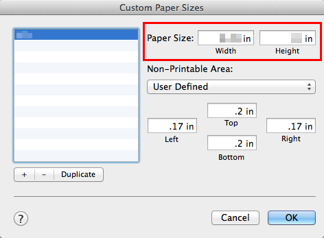 This saves the custom paper size, which can be selected from the [Paper Size:] drop-down list in [Page Attributes].