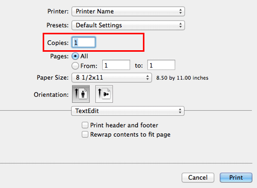 In [Copies:] in [Copies & Pages], specify the number of copies you want to print.
