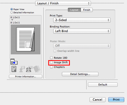 In [Layout / Finish], select the [Image Shift] check box.