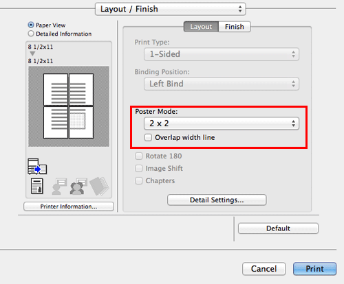 In [Poster Mode:] in [Layout / Finish], select "N