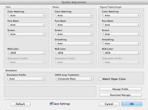 Specify the settings for [RGB Color:], [Destination Profile:], and [Simulation Profile:].