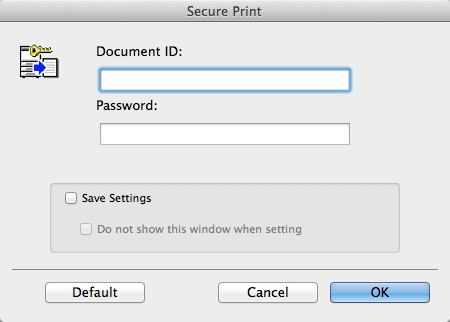 Data printed using the Secure Print function is saved in the Secure Print User Box. To print the saved data, you need to enter the document ID and password specified in the printer driver.